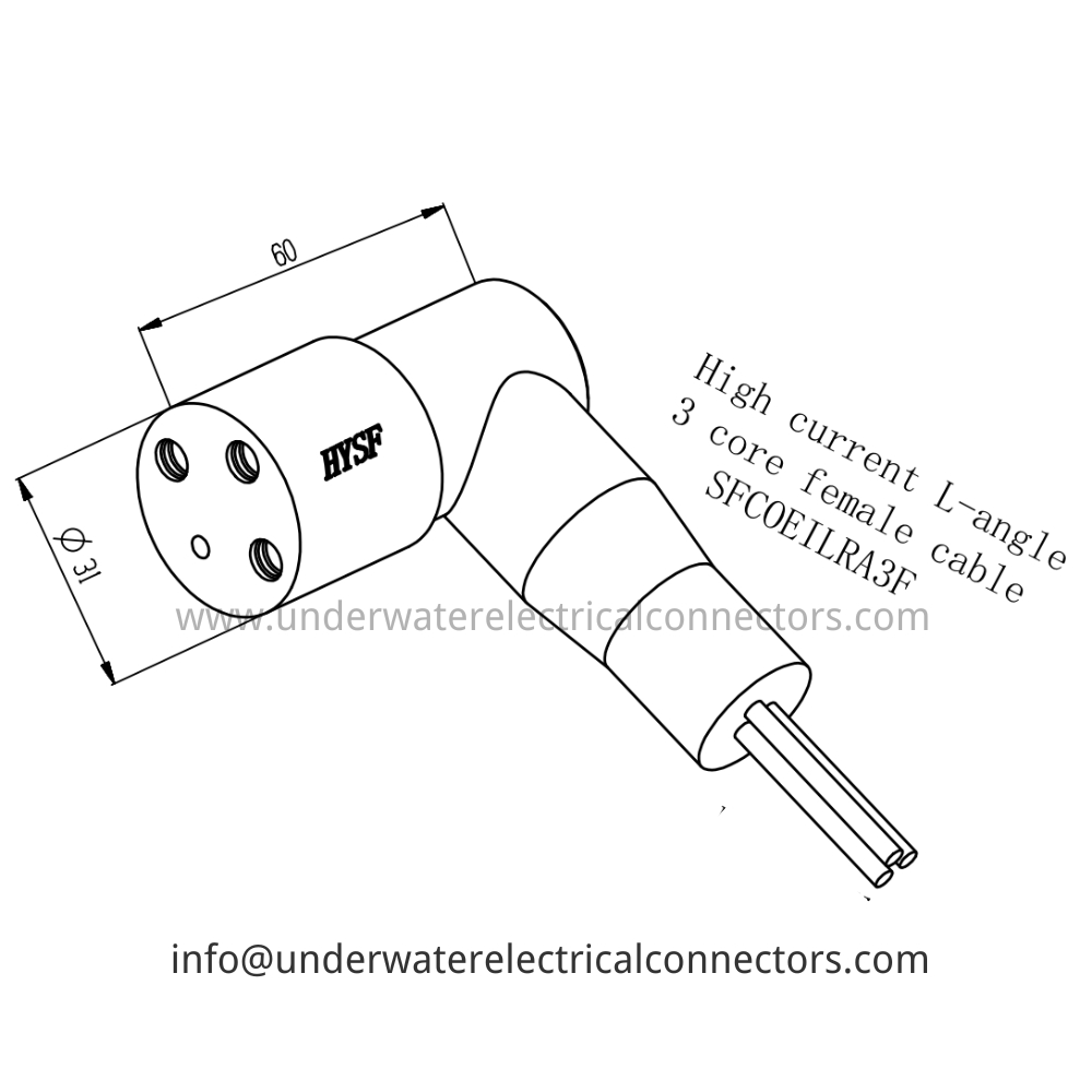 HYSF SFCOEILRA3F High current 3-core L-angle female cable Underwater Connector