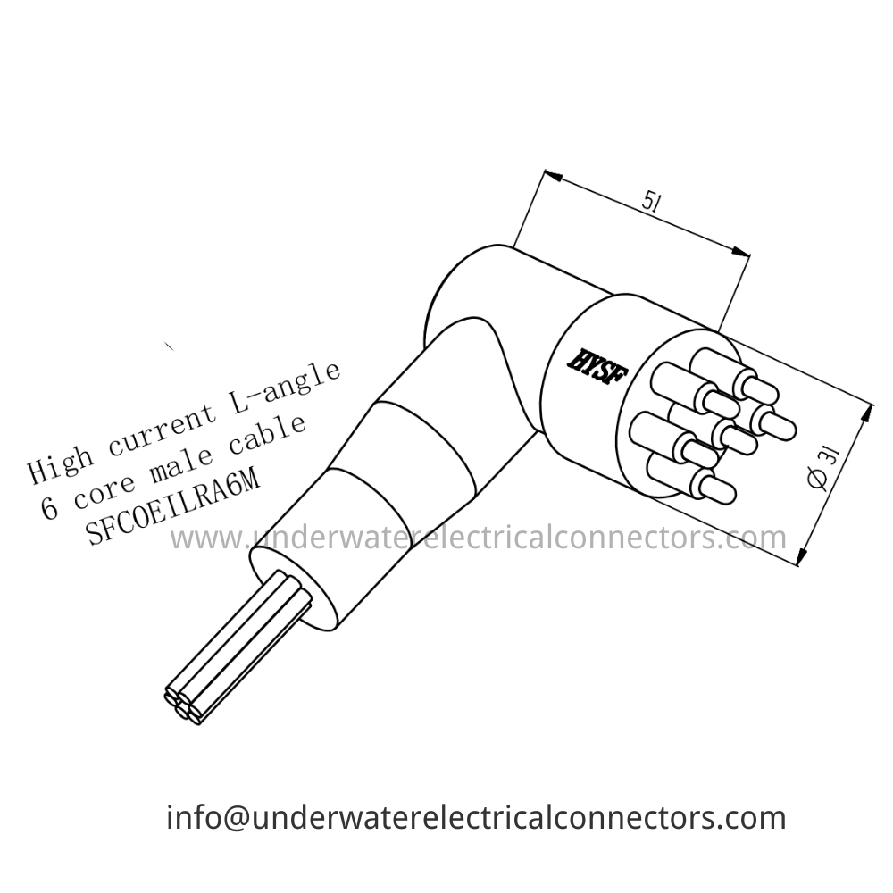 HYSF SFCOEILRA6M High current 6-core L-angle male cable Underwater Connector